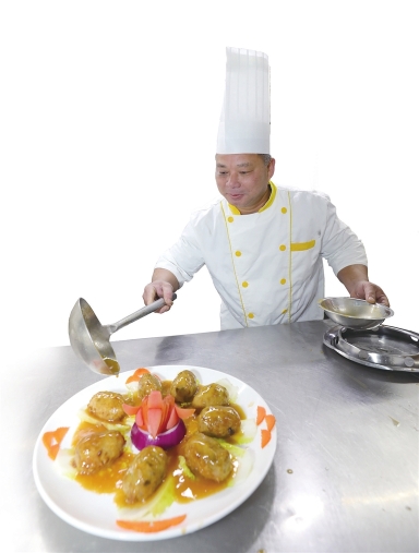 這道菜是廚師黃坤生的拿手菜。黃坤生是江東新區(qū)聯(lián)心酒樓的負責人,從業(yè)近30年,一直堅持用廚德“烹飪”出美食,用誠信經(jīng)營酒樓。